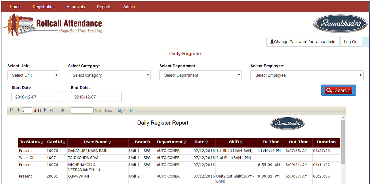 Roll Call Attendance system provides many benefits to organizations and Educational Institutions. It enables employer to have complete employees working hours (Timecard and Time scheduling). It helps control labor costs by reducing over-payments. Manual processes are also eliminated. Our Time Keeping system is invaluable for ensuring compliance with labor regulations regarding proof of attendance and Time keeping solution.